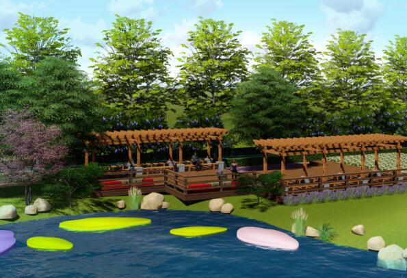 以打造具有人文气息的生态健康公园为目标,在功能上考虑打造全龄化公园融入地域文化精神,建设闲坐平台、阳光草坪、运动跳舞、儿童活动、游湖观荷、休闲健身等多功能场地,建设巨浪牧场的门户工程。