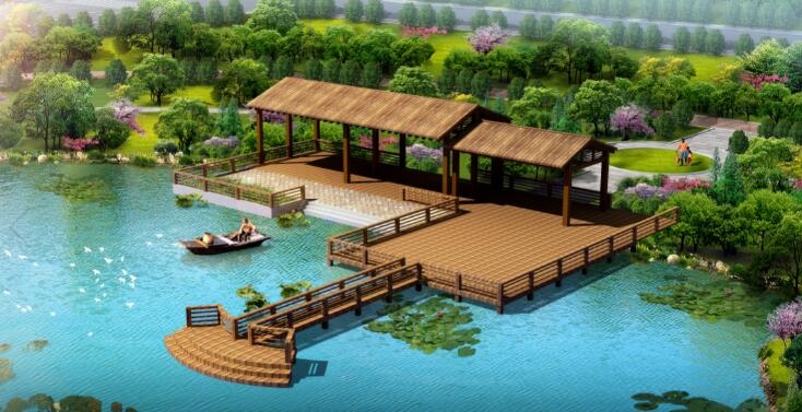 该项目设计中结合荷花池的特色,设计理念以尊重自然、生态为先,合理利用自然景观,合理布置休闲广场、亲水平台、码头等亲水休闲设施,打造“天蓝、山青、水秀、岸绿、景美、游畅”的自然生态绿地和城市滨河景观游憩空间,体现具有文化品位的景观特色。
